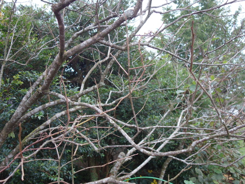 蔓を上の方の枝にからませました。しかし、これではまだ不十分なので、12月に紐で固定しようと考えています。