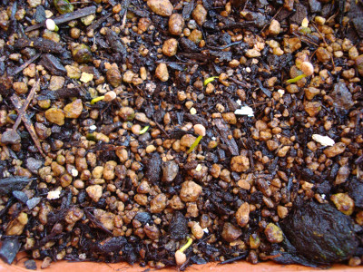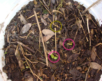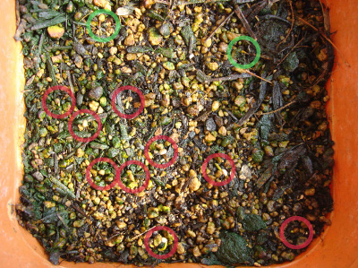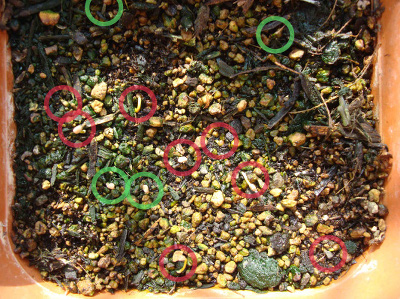 (2011年12月4日)発芽した種子8個がどこにあるかわかりますか。正解はこちら。