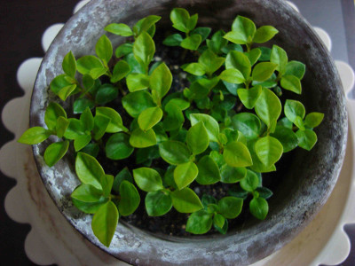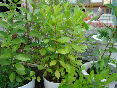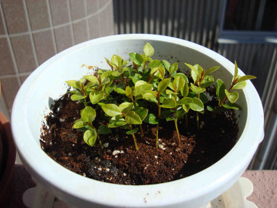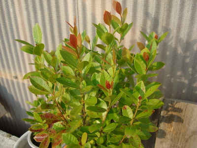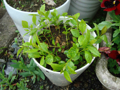 2013年〜2014年の冬は地植えでも越すことができました。家の裏の榊の木の間に植えたところ、霜の直撃は逃れられたので、何とか持ち堪えたようです。これまで失敗してきた地植えでも栽培できそうです。ただ、先端の新芽の部分は黒く枯れていました。霜が厳しくない場所の分、木陰ですので日当りがいま一つですが、これは避けられません。木の生長を良くするには間引きするとか、榊の木の枝を少し落とすとか、肥料をやるとかの対策も考えられなくはないですが、グァバティー用の葉っぱの栽培と思えばこのまま密集状態でもいいのかもしれません。意外にこの密集状態が厳しい霜と氷点下の気温に耐えられる要因かもしれません。