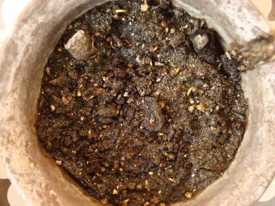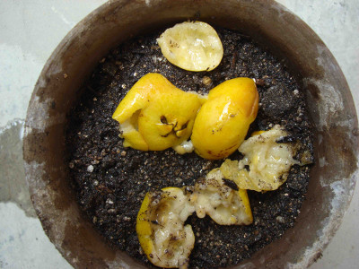 2012年10月22日にグァバ酒を漬けました。その時使えなかった腐りかけのグァバ2個を半分に割って鉢に置きました。発芽させるつもりです。