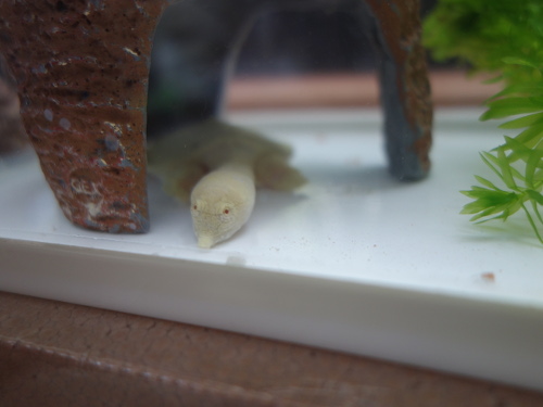 この中国産のアルビノシナスッポンは外来種なのでリリースすることはできません。リリースしたところでたぶん生きてはいけないでしょう。目が不自由なので食べ物をうまく捕獲できないのではないでしょうか。また、黄色くて目立つので外敵に襲われやすいことも理由として挙げられます。まあ、私が生きている間はずっと一緒にいます。