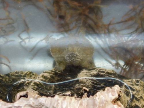 甲羅はフニャフニャで少し痩せていて、貧弱な感じです。早く元気になってほしいです。