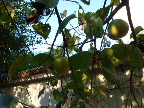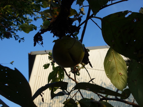 2005年11月に買ってきて植えたいさはや柿が2018年に7個生りました。ここ数年では、10年経った2015年に数個生りましたが、収穫には至りませんでした。2016年はゼロ個で、2017年は1個しか生りませんでした。そして、13年目の2018年についに5〜6個は収穫まで漕ぎ着けられそうです。