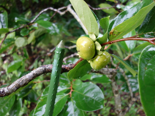 植えてから10年になります。昨年は初めて1個も生りませんでしたが、ずっと実がたくさん生ってきましたので、木は大きくなっていません。