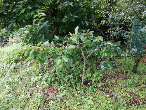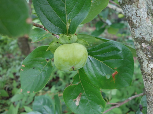2016年は次郎柿が5個未満生っていましたが、現在は2個だけです。毎年生っていて、いまだゼロ個の年はありません。毎年生るので木はあまり大きくなっていません。樹形が良いのだと思います。