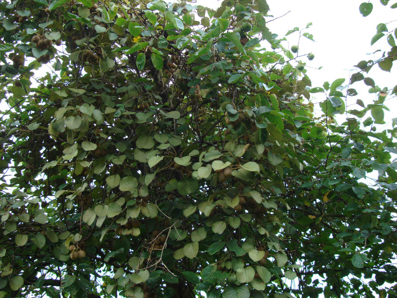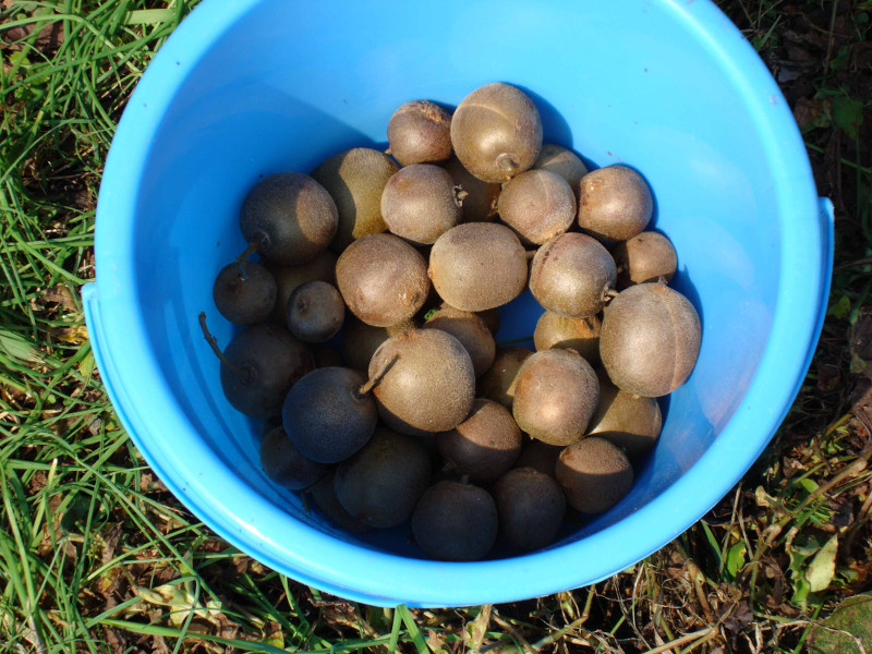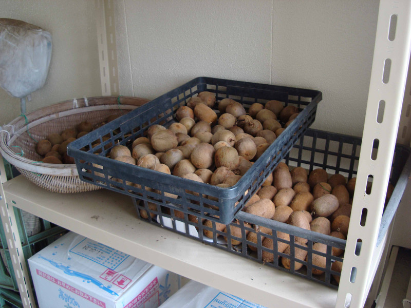 収穫時期の目安は、霜のおりる直前といわれていますが、私の場合は10月中旬には収穫しました。収穫したばかりの果実は硬くて酸味が強いので、追熟させます。10日~2週間で食べられますが、私の場合は何だか傷むのが早いような気がしています。