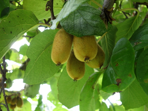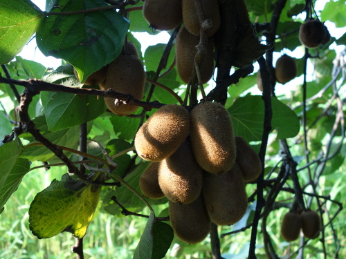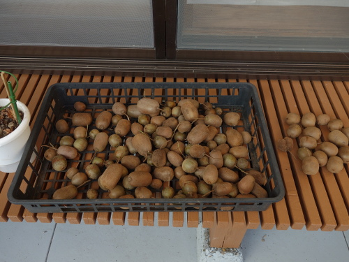 キウイは放置してもたくさん生ってくれます。特に香緑は毎年生ってくれます。3本分を合計するとけっこう穫れます。ちなみに、ゴールデンキングは2011年にはたくさん生ったのですが、2012年は2個しか生らず、2013年はたくさん生りました。ゴールデンキングは来年2014年は裏年になりそうです。