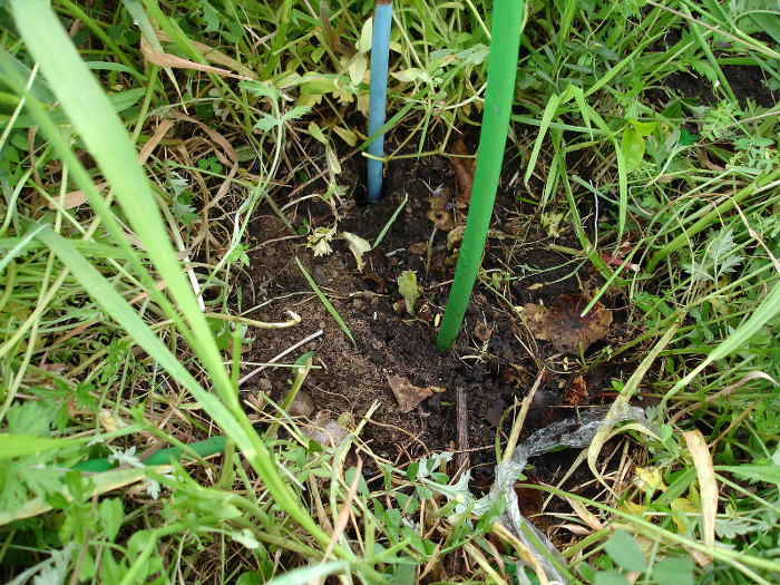 草刈り機で刈られてしまった香緑の株から出てきた蘖(ひこばえ)と、新規に植えた市販の苗(左側)の2本のうち、前者をNo.4、後者をNo.3とします。下の写真はそれから4年後のNo.3とNo.4の香緑です。
