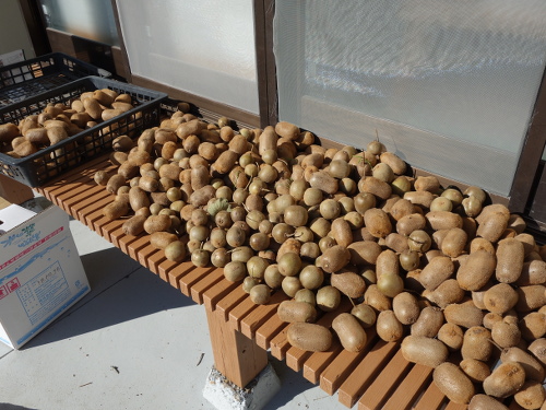 けっこう大きい実が穫れました。ゴールデンキングも混ざっていますが、形とツヤが違うので判別は容易です。