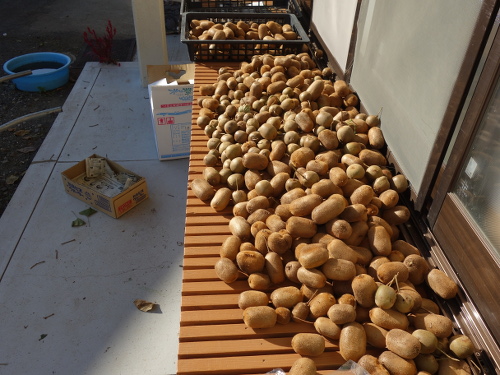 ゴールデンキング(丸い方)も混ざっていますが、2014年の香緑(米俵形の方)の今日の収穫分の半分です。