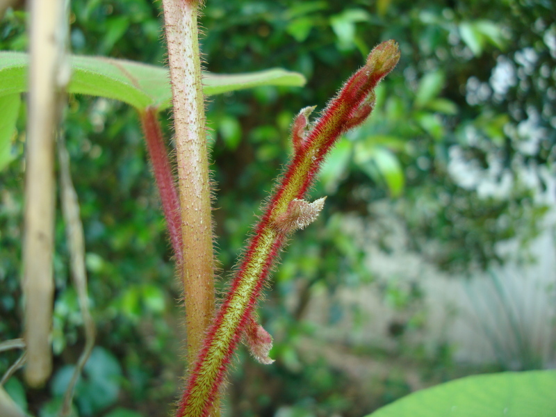 2014年6月8日(日)、葉っぱは緑になってきましたが、葉柄の赤色が際立っていました。