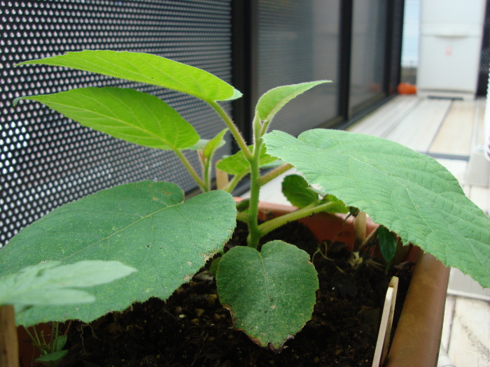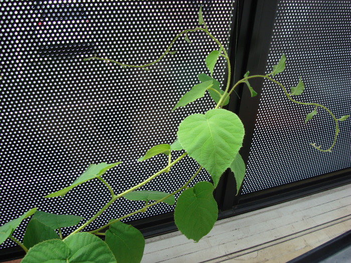 2014年4月26日(土)、結局、ベランダの暑さと乾燥に耐えられなかったようです。枯れてしまいました。同じ鉢の中にあとで移植した巨峰の苗は生き残っていますが、キウイは萎びて枯れてしまいました。結局、2つの鉢のうち、No.1の方は枯れてしまいました。一方、No.2の方は2本生き残り、だいぶ育ってきました。香緑は、赤い産毛がきれいです。