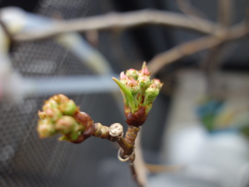 ベランダで栽培しているラ・フランスの鉢植えに蕾が付きました。