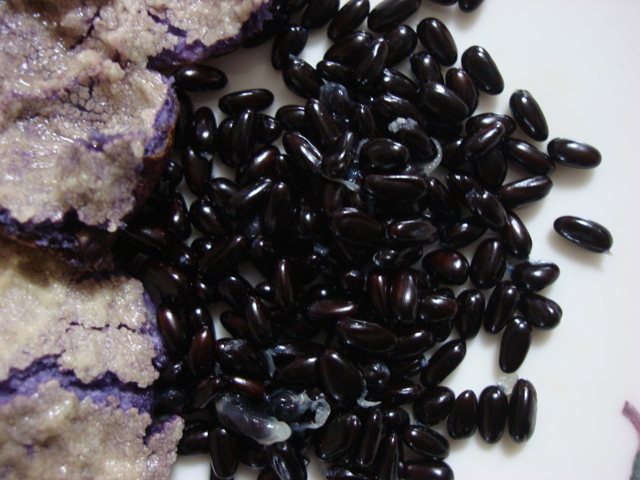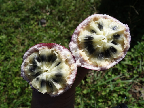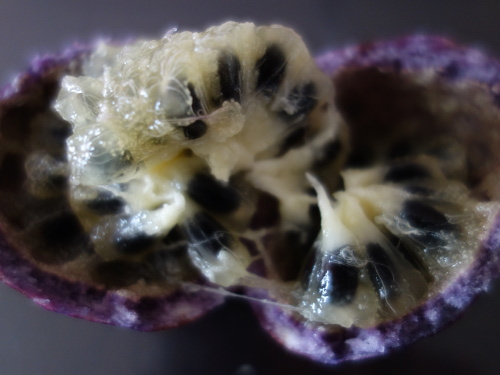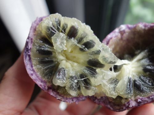 もっと熟すと果肉が透明になります。このムベはここまでです。
