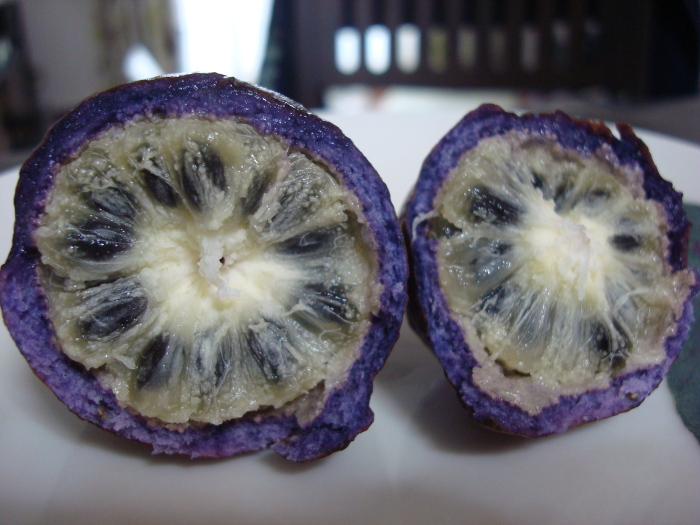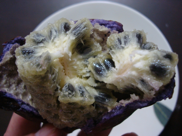 種がいっぱい詰まっています。皮は紫芋みたいです。