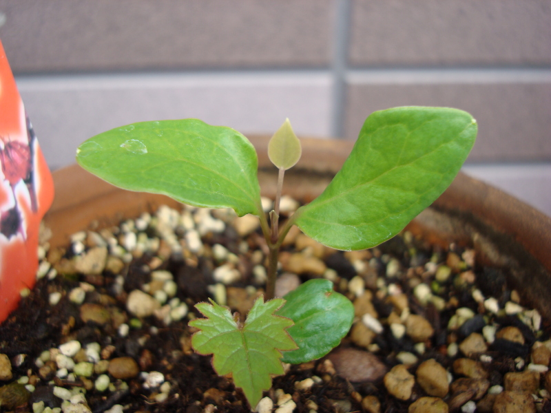 種から割と簡単に発芽し、しかも、苗はけっこうあっという間に生長します。これが野山のあちこちでムベが自生している所以でしょう。鳥や猿が果実を食べて、種を散蒔いてくれるからです。