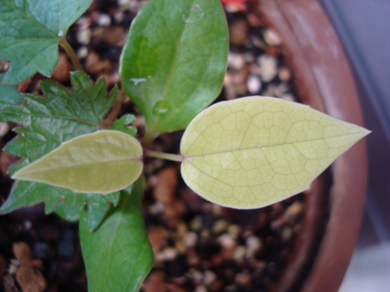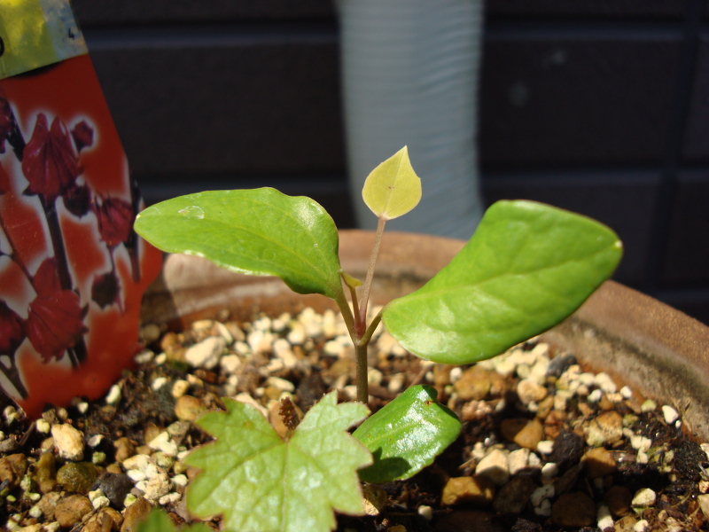 鉢植えしたムベ(No.1)。1週間でだいぶ育ちました。