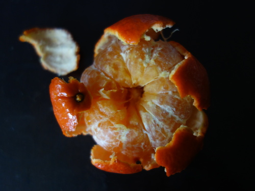 上の3個一緒に写っている写真の三角形の頂上にある1個を剥いて食べます。