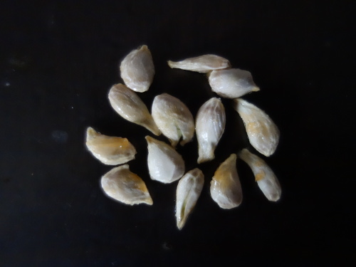 2020年1月14日午前中に3個目の果実を食べて種13個を蒔きました。3個の果実に入っていた41個の種のうち、まともな種は半分といったところです。それでも20個前後あるので、どれか1個ぐらいは発芽してくれるでしょう。