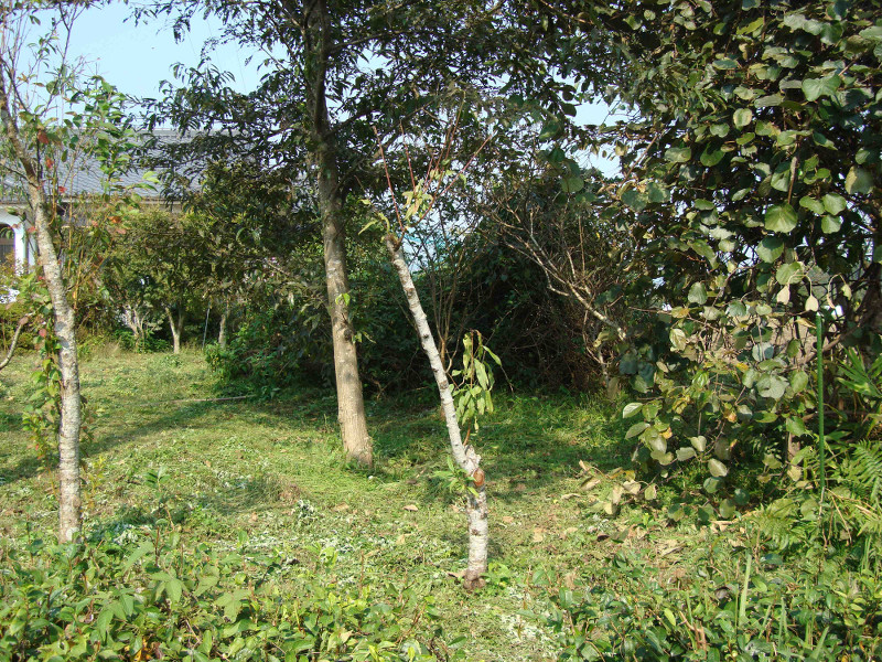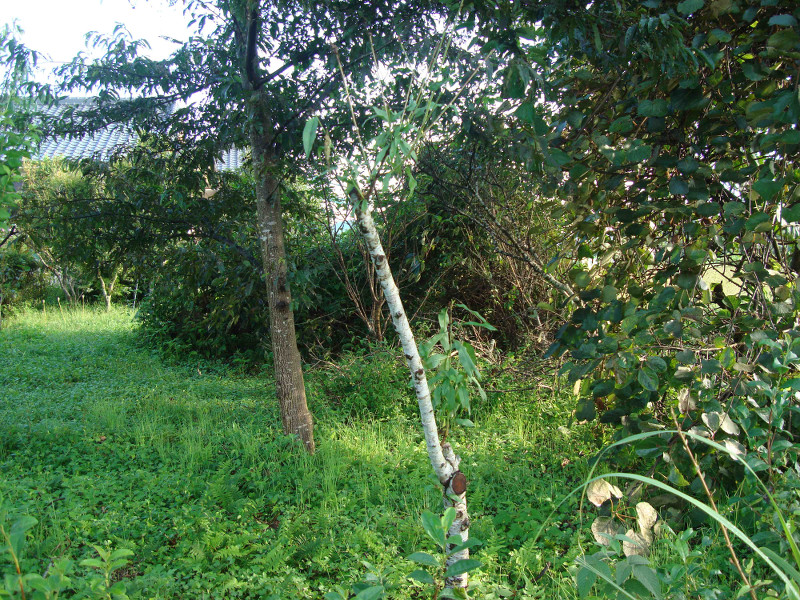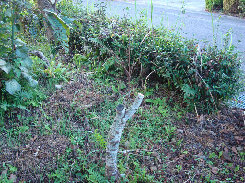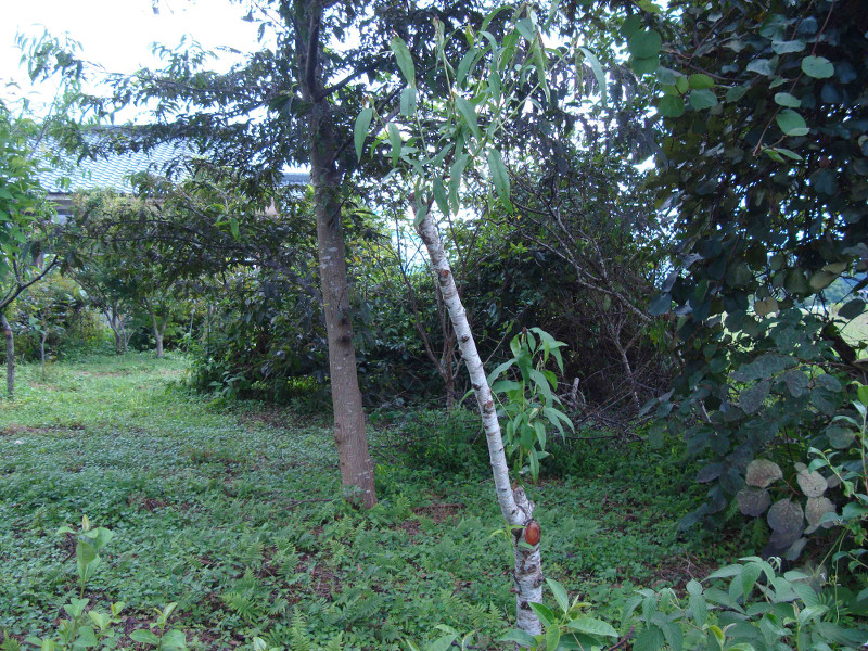最初に植えた白鳳の木がだいぶ傷んできています。根元付近の腐食したところから幹の中に空洞が出来ていて、根元付近から葛が入って上に出て来ていました。珍しいのでこのまま残しています。