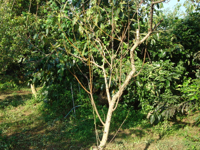 葉が少し落ちたた大玉白鳳の木