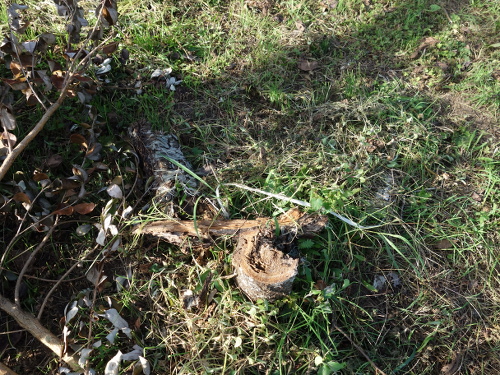 地面に近いところからのこぎりで切りました。