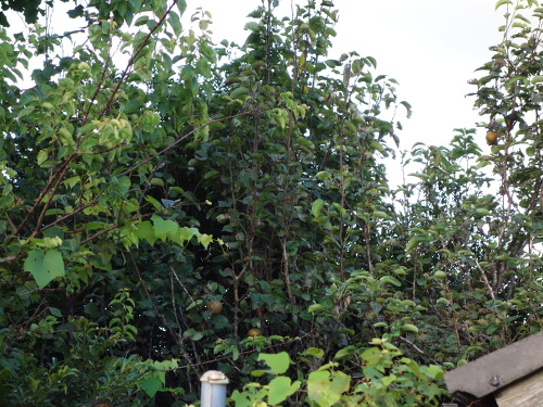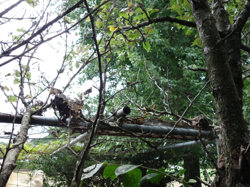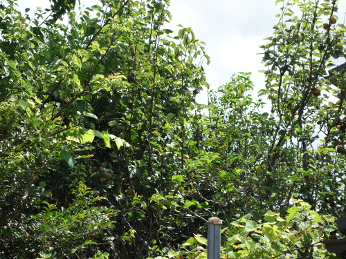 木があまり高くなりすぎないように上の方を切った方がいいのか逡巡しています。右側の木は二十世紀梨。