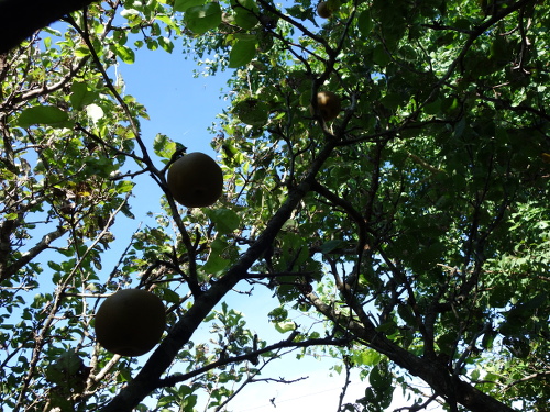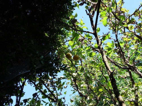 低いところの実は早めに収穫した方が良さそうです。動物がとっていくことがあります。昨年は1個あったのに消えてしまったからです。