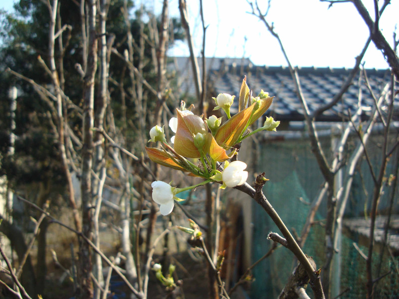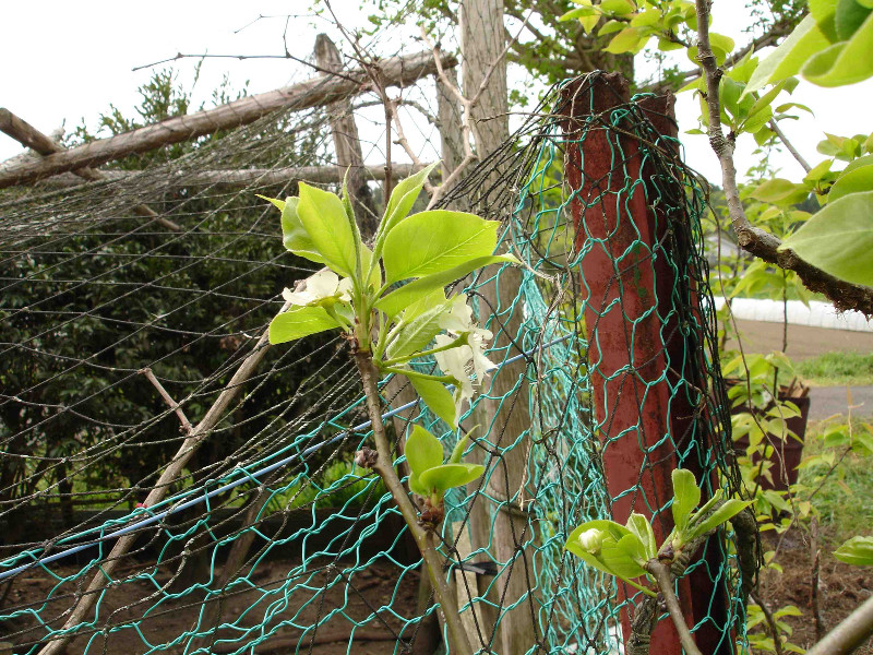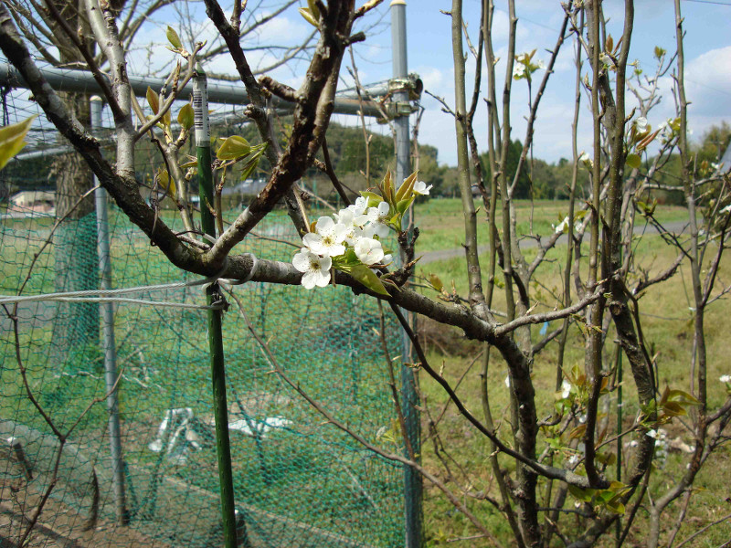 新高梨は毎年花が咲き、結実もします。ただ、最後まで生り続けることがありません。野球ボールぐらいの大きさまでなれば御の字ですが、そこまでも到達できないうちに、雨や台風で落ちてしまいます。いつか収穫できることを期待しています。