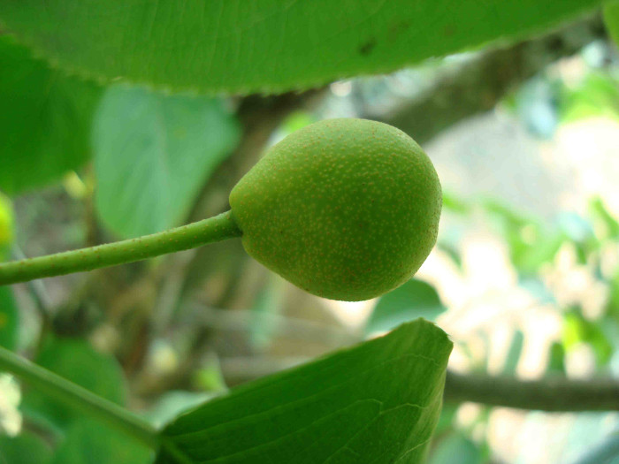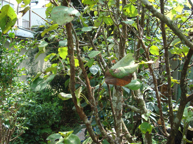 2017年8月には2年ぶりに少しましな果実が1個だけ生っていました。でも、間もなく消えてしまいました。大きさは野球ボールより少し小さいくらいです。でも1個実ったのは事実なので2018年に期待します。