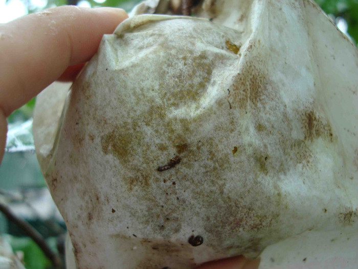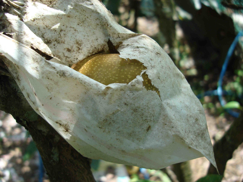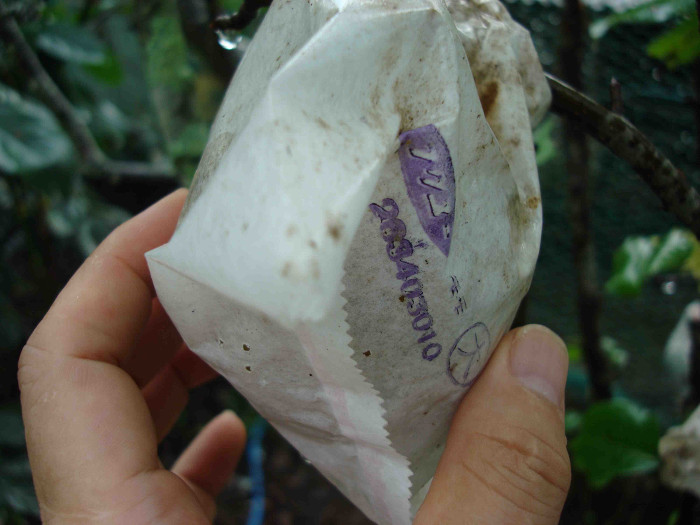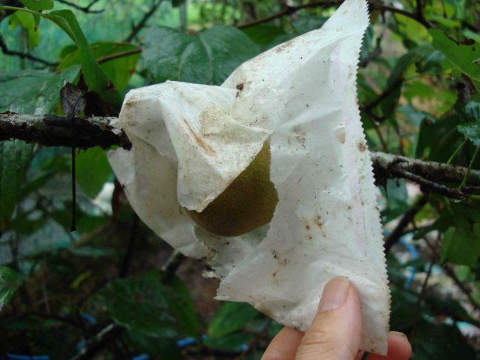 袋掛けした新高梨の実4個は黒い点ができてきたので家族で食べたとのこと。
