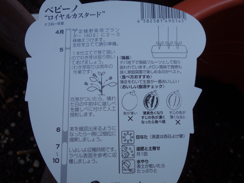 ペピーノの苗に付いていたタグの裏側の説明書き
