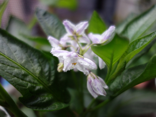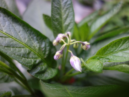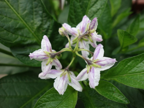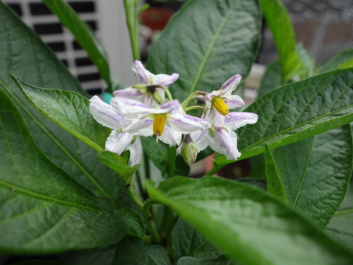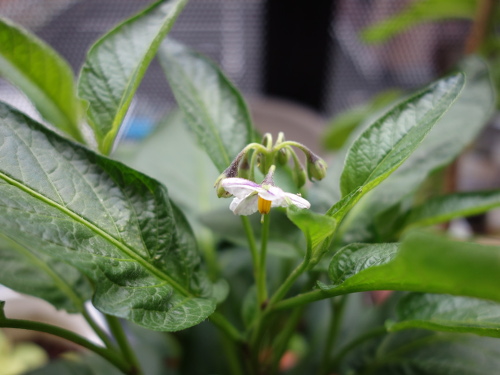 最初の1輪が咲きました。ナスの花に似ている感じです。