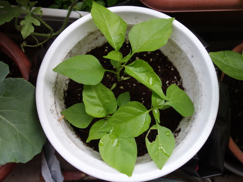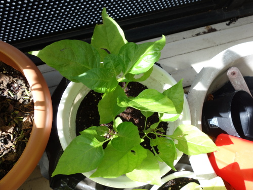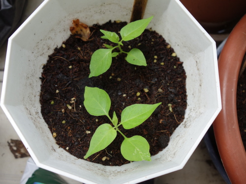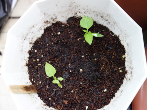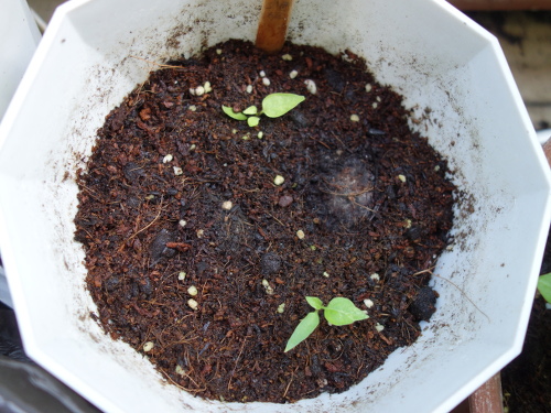 1つ目の鉢の4ヶ所の中の最後。2つ目の鉢の苗は花が咲く気配はありません。