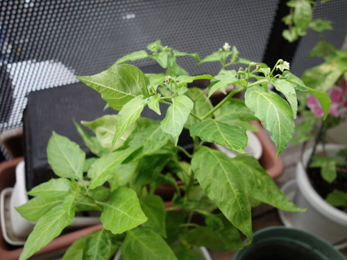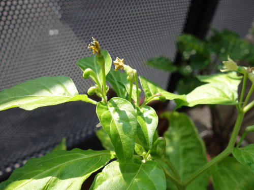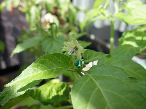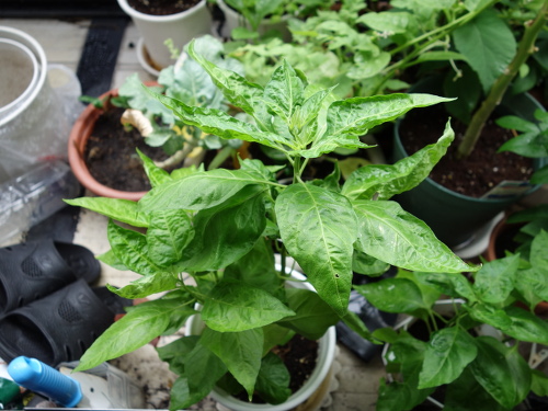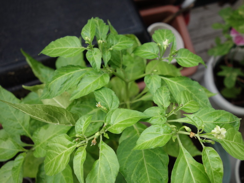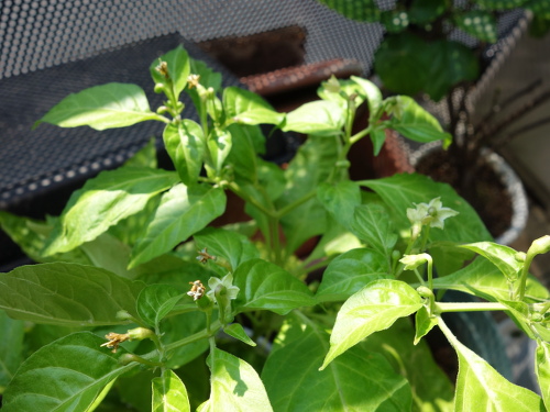 手前にもう1個の鉢がありますが、そちらの苗は成長が遅く、花は咲いていません。鉢の選択は重要といえます。