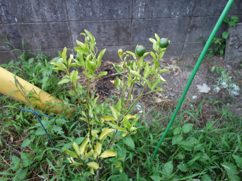 畑に植えて6ヶ月目の10月に弱り始めたポンカンの苗木