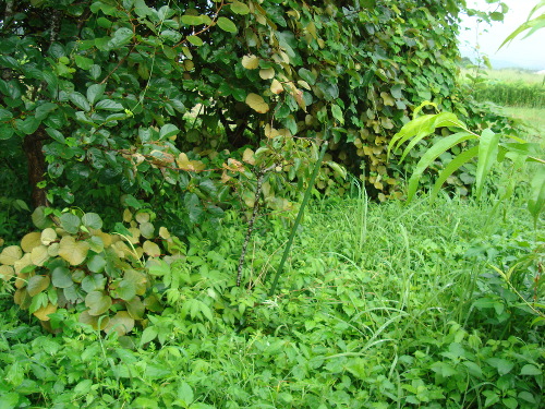 市販の苗木を植えてから9年近く経ちますが、蜂屋柿と同様、いっこうに木が大きくなりません。植えている場所が悪いのだと思います。2016年の秋に場所を変えてみようと思っています。