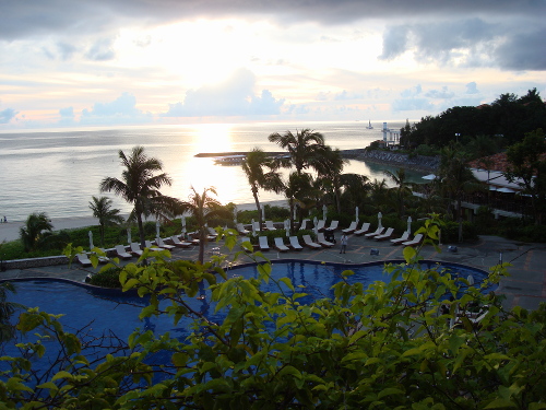 ゆったりとした時間を過ごしたいので時間をチェックしたことはありませんが、あっという間に時が過ぎてしまいます。ザ・ブセナテラスに宿泊する時は、このサンセットタイムのサックス生演奏を聴かないともったいないです。そのためにも、私たちの場合はガーデンビューの部屋ではなく、オーシャンビューの部屋でなければなりません。これが、2014年の1日目にクラブ・コテージ宿泊でしたが、2日目にはセントラルタワーのオーシャンビューの部屋に戻してもらった理由の1つです。嗜好は人それぞれですね。