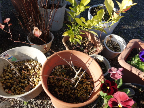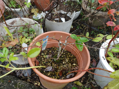 5ヶ月後、葉っぱは少なくなっているけれど、残っています。樹形は盆栽っぽくなっています。