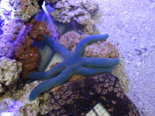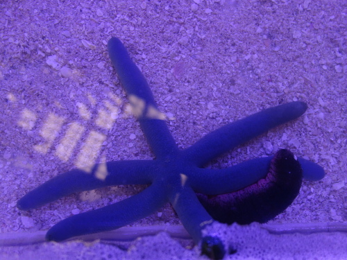 アオヒトデ。下はマンジュウヒトデ。(2017年10月17日16:52撮影)
