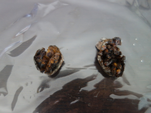 落下して腐ったストロベリーグァバの果実を半分に割ってみました。