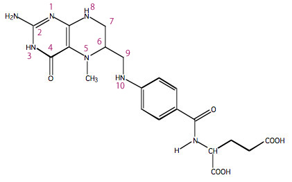 5番と10番の窒素原子Nがメチレン基(-CH2-)で繋がっています。メチレン基の転移を担っている補酵素です。