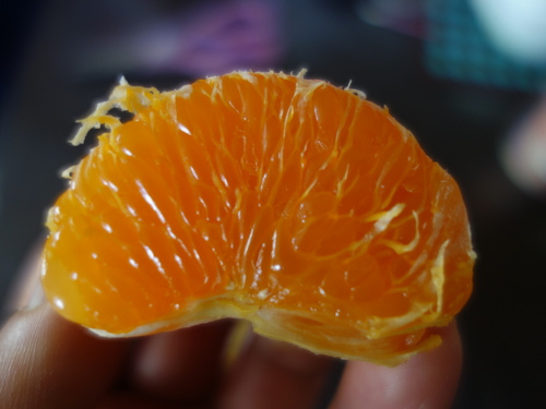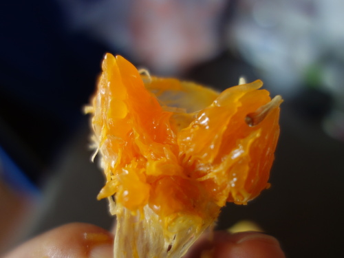 瓤嚢(じょうのう)のじょうのう膜を剥いてみると、とても薄いです。その点はノバ・オレンジと同様です。