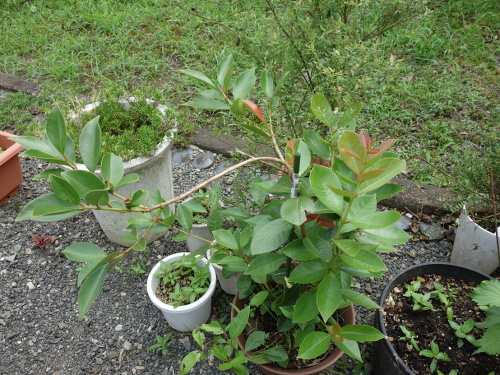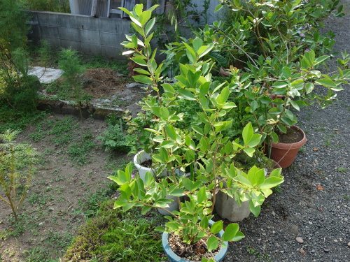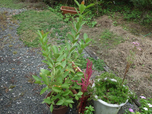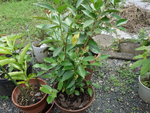 こちらNo.2の鉢には3株の苗木がありますが、この中で最も生長している1本の苗木の大きさは1鉢に1株のNo.1の苗と比べても遜色ありません。3本なので3分の1の大きさしかならないのではないかと考えがちですが、ここまでの苗の大きさでは必ずしもそうではなさそうです。ただ、今後もっと大きくなってきた時には、限られた養分の取り合いの結果、1鉢1本のNo.1より生長が遅くなることはあり得ると思います。