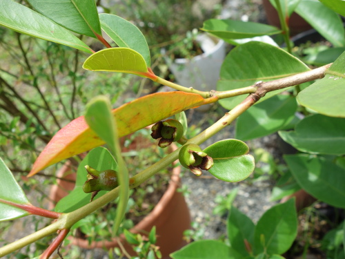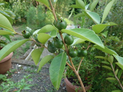 イエローストロベリーグァバの種から発芽して2年近く経ちました。4本の実生苗のうち、4本すべてに実が生りました。これで再現性があることがわかりました。