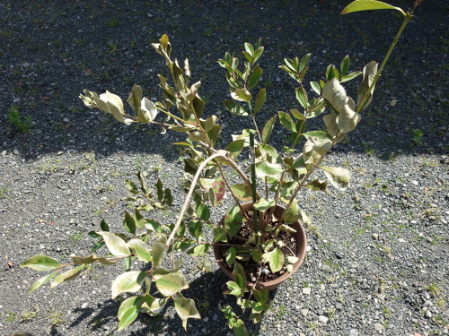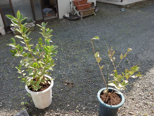 No.1の方が枯れてきました。根詰まりを起こしているとかんがえられます。そこで、鉢を一回り大きくすることにしました。