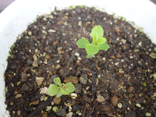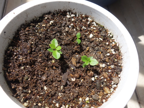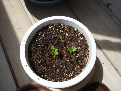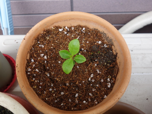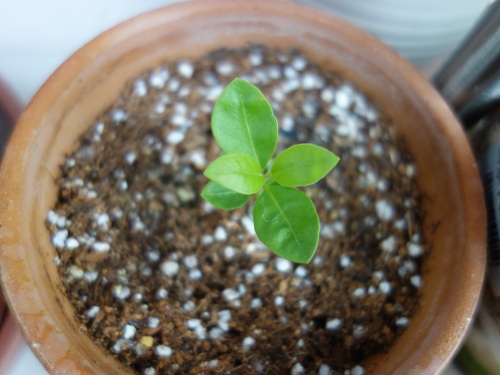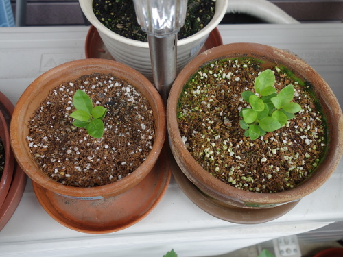 最後に水をやりました。これで様子を見ます。無事に育つようだったら、そのうち1本に絞ります。地植えしたら冬の寒さに耐えきれないので、室内に移動できる鉢植えでいく予定です。