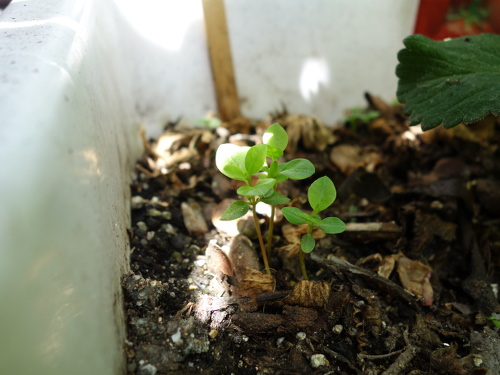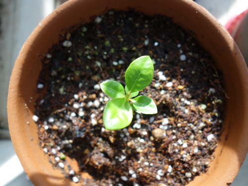 2014年秋に実ったイエローストロベリーグァバの果実を1〜2個プランターに置いていたら、芽が出ました。生長が今ひとつなので鉢に移植します。