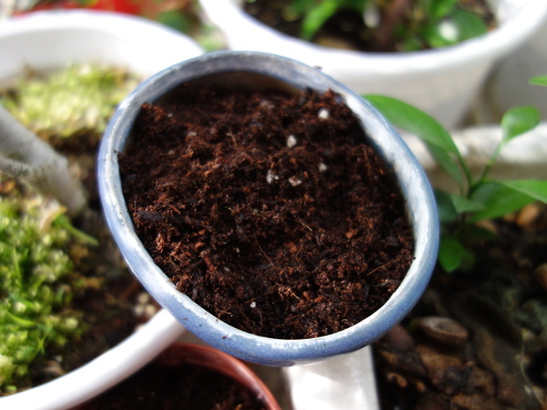 紫紺榴(しこんりゅう)を植えてあった小さな鉢に市販の培養土を入れました。これに植え直します。