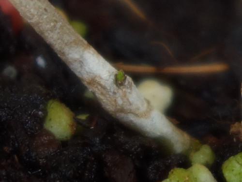 2018年5月19日現在、No.2の方から小さな芽が2箇所出ていることがわかりました。2日前の時点では枯れているかもしれないと言ったばかりなのに、まだ生きていたことが判明しました。まるで聞こえていたかのように急に出てきました。